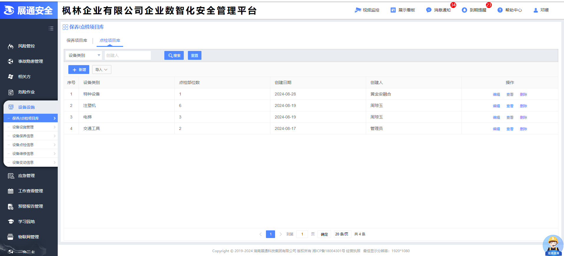 企業(yè)數(shù)智化安全管理平臺(俗稱企業(yè)端)匯集企業(yè)管理、風險管控、隱患管理、體系運行、危險作業(yè)、AI預警、AI識隱患、應急管理、預警動態(tài)、一會三卡、物聯(lián)網(wǎng)管理、相關方、設備設施、學習園地等功能于一體,旨在構建標準化、規(guī)范化、便捷化的管理流程,引導企業(yè)自主開展安全管理工作,建立健全全員安全生產(chǎn)責任制,全面提升企業(yè)安全管理數(shù)智化水平。